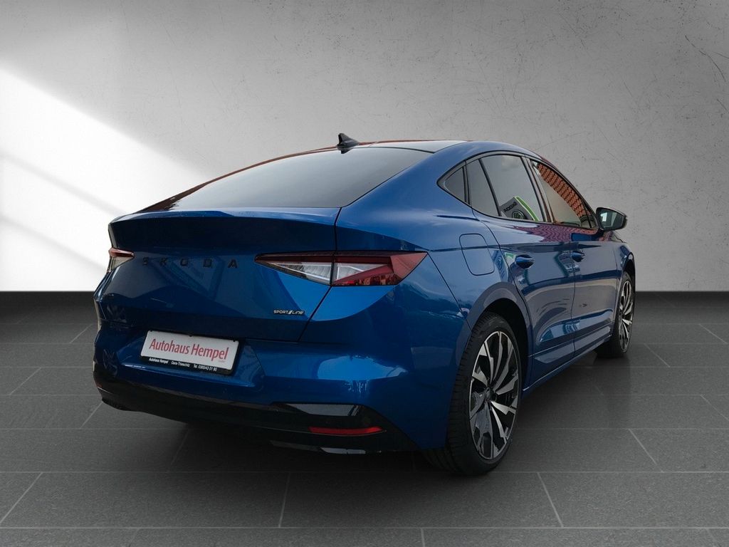 8 Lautsprecher, Airbag Beifahrerseite abschaltbar, Airbag Fahrer-/Beifahrerseite, Akustischer Fußgängerschutz, Außensound (e-sound), Ambiente-Beleuchtung LED, Antriebs-Schlupfregelung (ASR), Antriebsart: Heckantrieb, Audio-Navigationssystem mit Touchscreen-Farbdisplay, Audiosystem mit Touchscreen-Farbdisplay 13", Ausstattungs-Paket: Drive Sport Basic, Ausstattungs-Paket: Sitzkomfort Basic, Außenspiegel elektr. verstell-, heiz- und anklappbar, mit Abblendautomatik und Memory, Außenspiegel schwarz lackiert, Chromzierleisten an Seitenfenstern, Dachhimmel schwarz, Design Selection Sportline, Einparkhilfe vorn und hinten, Elektromotor 210 kW (EDFA), Fahrassistenz-Paket: Traveller, Fahrassistenz-System: Abbiegebremsfunktion und Ausweichunterstützung, Fahrassistenz-System: Auffahrwarnsystem mit City-Notbremsfunktion (Frontradar-Assistent), Fahrassistenz-System: Berganfahr-Assistent (Hill-Holder), Fahrassistenz-System: Multikollisionsbremse (Multi Collision Brake), Fahrassistenz-System: Müdigkeitserkennung, Fahrassistenz-System: Verkehrszeichenerkennung, Fensterheber elektrisch vorn + hinten, Freisprechanlage Telefon mit Bluetooth, Gepäckraumabdeckung / Rollo, Getriebe für Elektrofahrzeug, Innenausstattung: Dekoreinlagen Carbon Optik, Innenspiegel mit Abblendautomatik, Isofix-Aufnahmen für Kindersitz an Beifahrersitz, Isofix-Aufnahmen für Kindersitz an Rücksitz, Karosserie: 5-türig, Kennzeichenbeleuchtung LED, Kindersicherung elektr. betätigt, Kombiinstrument digital (virtual cockpit), Kopf-Airbag-System, Ladekabel mit Typ 2-Stecker (Mode 3), Lendenwirbelstütze Sitz vorn links, Lendenwirbelstütze Sitz vorn rechts, Lenksäule (Lenkrad) verstellbar (vertikal / axial), Lichtassistent (Coming Home, Leaving Home), LM-Felgen, Mittelarmlehne hinten, Modellpflege, Panoramadach fest (Glas), Parkbremse elektronisch, Radioempfang digital (DAB+), Radstand 2765 mm, Reifen-Reparaturkit, Reifendruck-Kontrollsystem, Rückfahrkamera, Rücksitzlehne geteilt/klappbar (1/3-2/3), Scheinwerfer LED mit adaptiver Lichtverteilung (AFS), Schnellladevorrichtung (CCS-Ladedose), Seitenairbag vorn, Seitenairbag vorn mitte (Center-Airbag), Servolenkung elektronisch (Servotronic), Sitz vorn links höhenverstellbar, Sitz vorn rechts höhenverstellbar, Sitzbezug / Polsterung: Mikrofaser / Stoff / Leder mit Ziernaht, SmartLink (Apple CarPlay und Android Auto), Sonnenblenden mit Spiegel (LED-Beleuchtung), Sport-Fahrwerk, Sprachsteuerung für Infotainment-System, Steckdose (12V-Anschluß) im Koffer-/Laderaum, Türen mit Warnleuchte, Türgriffe außen Wagenfarbe, USB-Schnittstelle vorn (2-fach, Typ C), Verglasung getönt, Wireless SmartLink