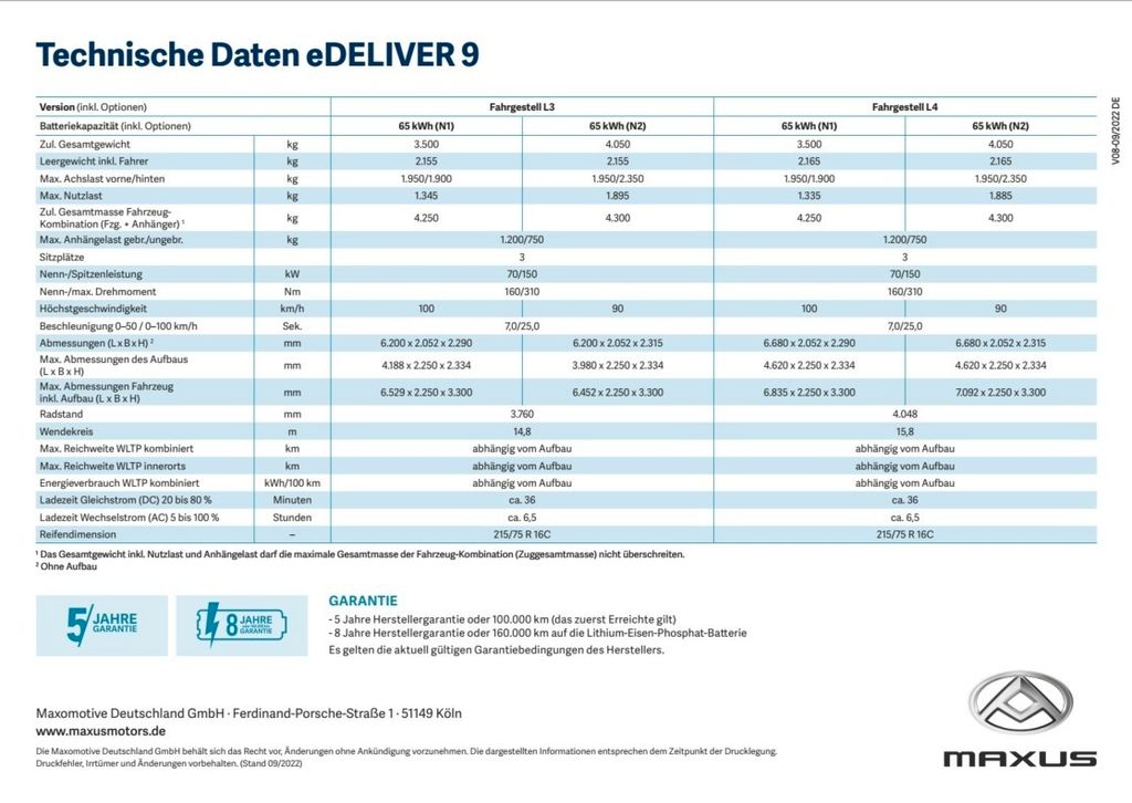 Maxus eDeliver 9 L3 65 kWh Pritsche *ACC*LED*PDCvo*SHZ