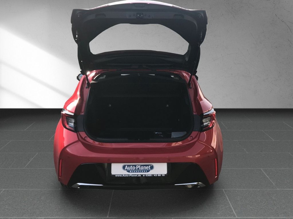 6 Lautsprecher, Ablagetasche an Beifahrersitzlehne, Airbag Fahrer-/Beifahrerseite, Akustischer Fußgängerschutz (Außensound, AVAS), Ambiente-Beleuchtung vorn (LED), Audiobedienung am Lenkrad, Autom. Begleitfunktion der Beleuchtung (Follow me home, FMH), Außenspiegel elektr. anklappbar, Außenspiegel elektr. verstell- und heizbar, Außenspiegel Wagenfarbe, Spiegelfuss Wagenfarbe, Bi-LED-Scheinwerfer, Blinkleuchte in Außenspiegel integriert, Business-Paket, Dachspoiler, Elektr. Bremskraftverteilung, Fahrassistenz-System: aktiver Abbiege-Assistent, Fahrassistenz-System: aktiver Spurhalteassistent (Lenkunterstützung), Fahrassistenz-System: Auffahrwarnsystem (Forward Collision Warning, FCW), Fahrassistenz-System: Ausstiegswarnung (Safe Exit Assist, SEA), Fahrassistenz-System: Berganfahrkontrolle (HAC), Fahrassistenz-System: Fernlichtassistent (Abblendautomatik Fahrlicht, AHB), Fahrassistenz-System: Frontkollisionswarnung mit Fußgänger- und Fahrraderkennung, Fahrassistenz-System: Müdigkeitserkennungs-Sensor, Fahrassistenz-System: Rückfahr-Assistent mit automatischer Bremsfunktion, Fahrassistenz-System: Sicherheitssystem ERA GLONASS mit automatischem Notruf, Fahrassistenz-System: Sicherheitssystem Toyota Connect mit automatischem Notruf (eCall), Fahrassistenz-System: Spurhalteassistent (LDA), Fahrassistenz-System: Verkehrszeichenerkennung (RSA), Freisprechanlage Bluetooth, Freisprechanlage mit Audiostummschaltung und Sprachsteuerung, Gepäckraumabdeckung / Rollo, Geschwindigkeits-Begrenzeranlage mit Memoryfunktion, Getränkehalter vorn beleuchtet, Gurtstraffer vorn, Heckleuchten LED, Heckspoiler, Hybrid 103 kW (Motor 1,8 Ltr. - 72 kW 16V), Induktionsladeschale für Smartphone, Isofix-Kindersitz-System, Karosserie: 5-türig, Klimaautomatik 2-Zonen, Knieairbag Fahrerseite, Kopf-Airbag-System, Kühlergrill unten / oben Pianolack, Lenkrad (3-Speichen), Lenkrad heizbar, Lenksäule (Lenkrad) verstellbar, Leuchtweitenregelung automatisch, LM-Felgen, Modellpflege, Parkbremse elektrisch (EPB), Reifen-Reparaturkit, Reifendruck-Kontrollsystem, Rückfahrkamera, Rücksitz geteilt, Rücksitz klappbar, Schadstoffarm nach Abgasnorm Euro 6d, Schalt-/Wählhebelgriff Leder, Scheibenwischer mit Intervallschaltung, Scheibenwischerenteiser vorn, Seitenairbag vorn, Sitz vorn links höhenverstellbar, Sitz vorn rechts höhenverstellbar, Sitzbezug / Polsterung: Stoff/Kunstleder, Sonnenblenden mit Spiegel (beleuchtet), Start-Stop-Knopf, Steckdose (12V-Anschluß) in Mittelkonsole, Stoßfänger Wagenfarbe, Toyota Smart Connect (Apple CarPlay und Android Auto, Cloud-Navigationssystem), Türgriffe außen Wagenfarbe, Türgriffe innen verchromt, Universal-Schnittstelle (USB-/ iPod-/ AUX-Anschluss), Verglasung hinten abgedunkelt, Warnanlage für Sicherheitsgurte hinten