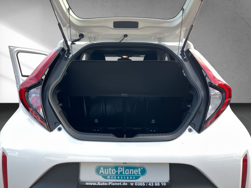 3. Bremsleuchte, Airbag Fahrer-/Beifahrerseite, Audiobedienung am Lenkrad, Audiosystem: Multimedia Toyota Touch, Autom. Begleitfunktion der Beleuchtung (Follow me home, FMH), Außenspiegel elektr. verstell- und heizbar, Außenspiegel schwarz lackiert, Fahrassistenz-System: Fernlichtassistent (Abblendautomatik Fahrlicht, AHB), Fahrassistenz-System: Sicherheitssystem Toyota Connect mit automatischem Notruf (eCall), Gepäckraumabdeckung / Rollo, Innenraumfilter: Staub- und Pollenfilter mit Aktivkohlefilter, Isofix-Kindersitz-System, Karosserie: 5-türig, Kindersicherung, Kopf-Airbag-System, Kopfstützen hinten, Lenkrad Applikationen in Pianoschwarz, Lenksäule (Lenkrad) höhenverstellbar, Motor 1,0 Ltr. - 53 kW KAT, Multimedia Display (9,0 Zoll), Park-Assistent mit Rückfahrkamera, Reifen-Reparaturkit, Reifendruck-Kontrollsystem, Rücksitz klappbar, Schadstoffarm nach Abgasnorm Euro 6d, Schadstoffarm nach Abgasnorm Euro 6e, Seitenairbag vorn, Sitz vorn links höhenverstellbar, Sitzheizung vorn, Sonnenblenden mit Make-up-Spiegel, Stop&Go-System (TSGS), Stoßfänger Wagenfarbe, Toyota Safety Sense, Türgriffe außen Wagenfarbe, Türgriffe innen verchromt, Warnanlage für Sicherheitsgurte hinten, Warnanlage für Sicherheitsgurte vorn