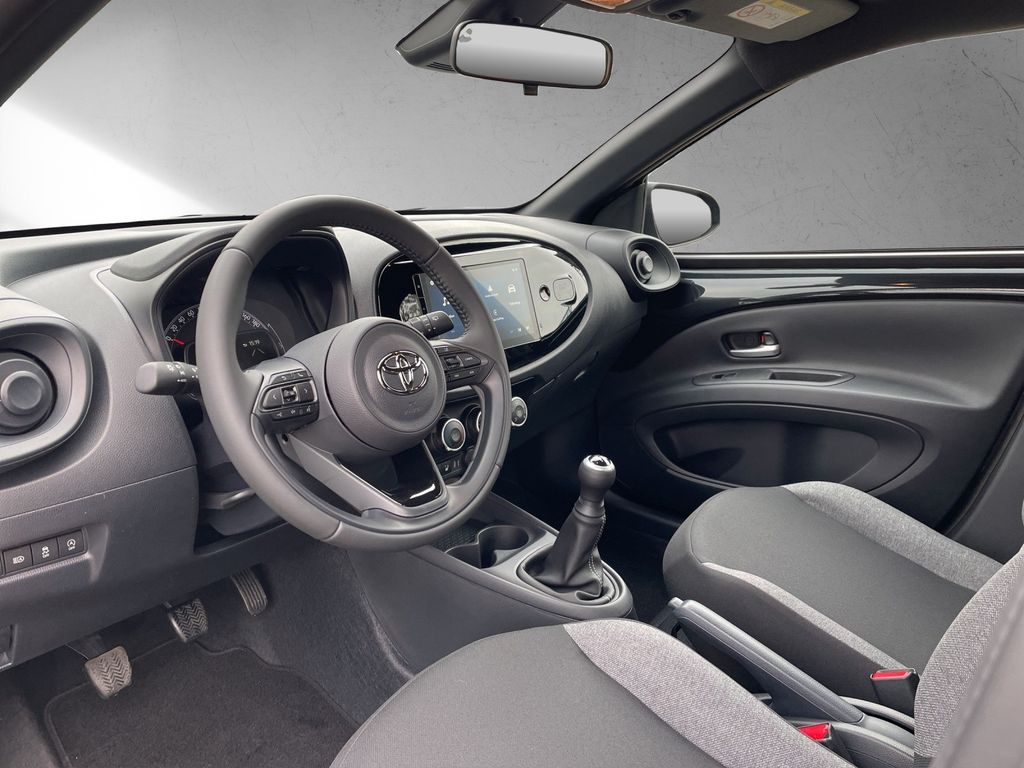 3. Bremsleuchte, Airbag Fahrer-/Beifahrerseite, Audiobedienung am Lenkrad, Audiosystem: Multimedia Toyota Touch, Autom. Begleitfunktion der Beleuchtung (Follow me home, FMH), Außenspiegel elektr. verstell- und heizbar, Außenspiegel schwarz lackiert, Fahrassistenz-System: Fernlichtassistent (Abblendautomatik Fahrlicht, AHB), Fahrassistenz-System: Sicherheitssystem Toyota Connect mit automatischem Notruf (eCall), Gepäckraumabdeckung / Rollo, Innenraumfilter: Staub- und Pollenfilter mit Aktivkohlefilter, Isofix-Kindersitz-System, Karosserie: 5-türig, Kindersicherung, Kopf-Airbag-System, Kopfstützen hinten, Lenkrad Applikationen in Pianoschwarz, Lenksäule (Lenkrad) höhenverstellbar, Motor 1,0 Ltr. - 53 kW KAT, Multimedia Display (9,0 Zoll), Park-Assistent mit Rückfahrkamera, Reifen-Reparaturkit, Reifendruck-Kontrollsystem, Rücksitz klappbar, Schadstoffarm nach Abgasnorm Euro 6d, Schadstoffarm nach Abgasnorm Euro 6e, Seitenairbag vorn, Sitz vorn links höhenverstellbar, Sitzheizung vorn, Sonnenblenden mit Make-up-Spiegel, Stop&Go-System (TSGS), Stoßfänger Wagenfarbe, Toyota Safety Sense, Türgriffe außen Wagenfarbe, Türgriffe innen verchromt, Warnanlage für Sicherheitsgurte hinten, Warnanlage für Sicherheitsgurte vorn